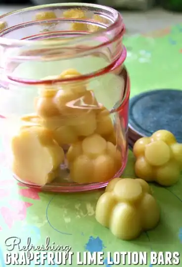 If hard soap takes away your skin from its shine, consider turning to grapefruit limit lotion bars instead. The list of supplies and instructions are here.