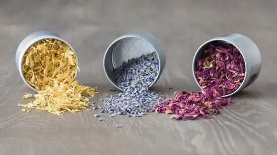 Add two tablespoons of each dried lavender, rose petals, calendula, and chamomile, and six cups of hot water into the cooking pot. Now, place it on the stove and simmer it for 4-5 minutes.